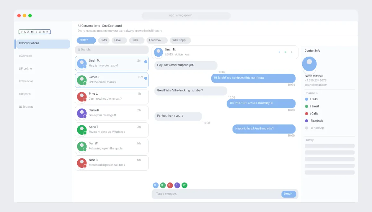 Flamegap combines CRM, communication, marketing, and automation tools into one streamlined system built for growing businesses.